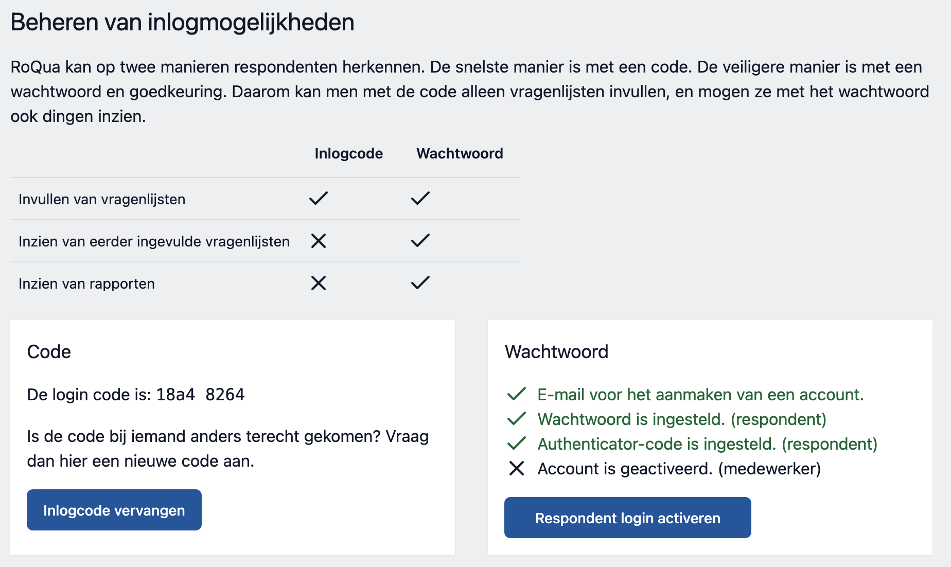 Nadat een respondent login is geactiveerd kan de respondent gebruik maken van de login features.