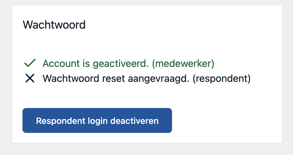 Een respondent account kan op dezelfde manier ook weer gedeactiveerd worden.
