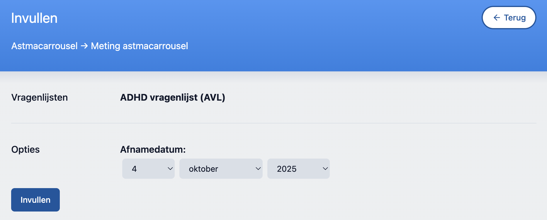 Before you start filling out the questionnaires, you can optionally indicate that the answers you are going to give are not from now, but from an earlier date, and that you are now entering them retroactively.